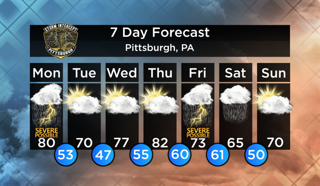 Friday we can expect to see some thunderstorms in the afternoon and evening. Some of these storms may be severe. Updates on this system will come closer to the end of the week.